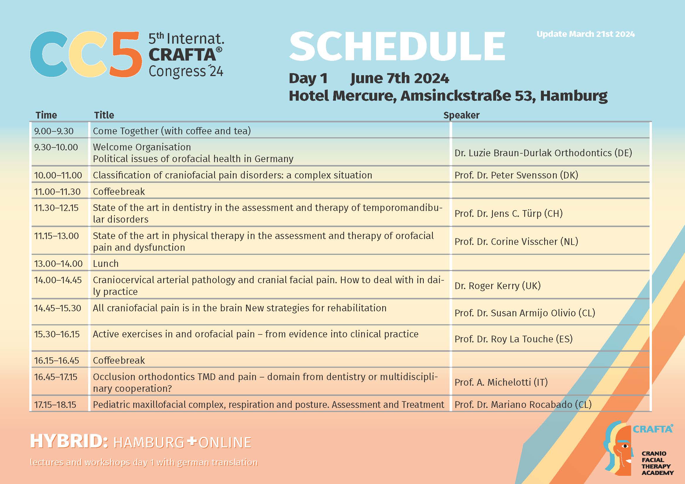 In these days of the congress the urgently needed communication and exchange between dentists and pyhsiotherapists will actually take place. How can we organize in our daily routine and practices to continue this holistic, interdisciplinary cooperation and how can we support this politically by improving the conditions for treatment and communication?